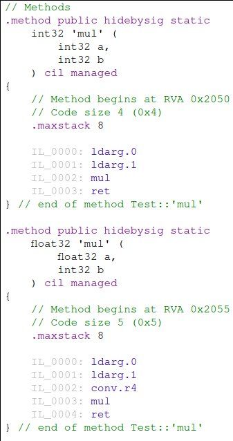 given an expression's arguments you need to answer two questions: what is its type, and what bytecode does it expand to? this gets particularly tricky when implementing 'operators'. bytecode is e.g. mul for primitives, but method invocation for other value types.