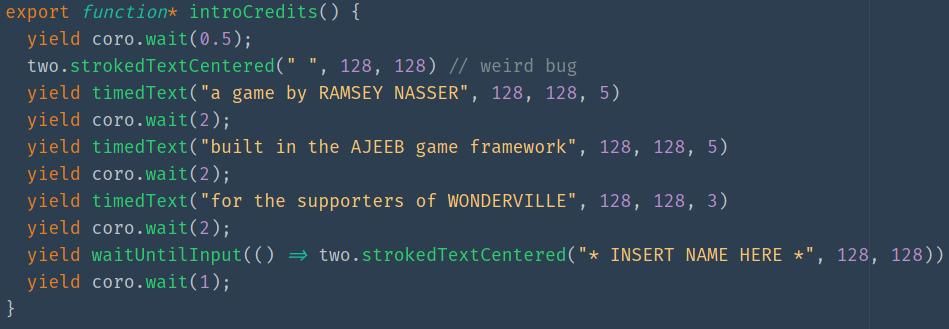a coroutine implementation means i can write code that looks like this and runs across multiple frames ✌