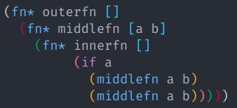 1. compiler bugs are bizarre. the first snippet produces bytecode that is valid, but swaps the closure values of b and middlefn in innerfn, so incorrect. the second snippet is completely fine. its going to be fun figuring out why.