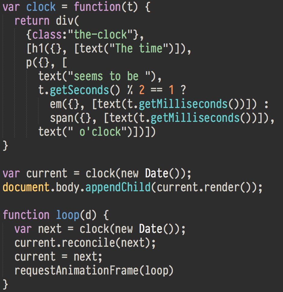 progress on vdom. reconcile is the key: it both diffs and applies/caches changed. no patches. trying three.js next.