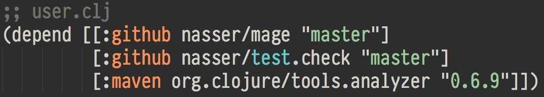 using the clojure feature where a file called user.clj gets loaded if it exists. i put dependencies there, not sure how i feel about that.