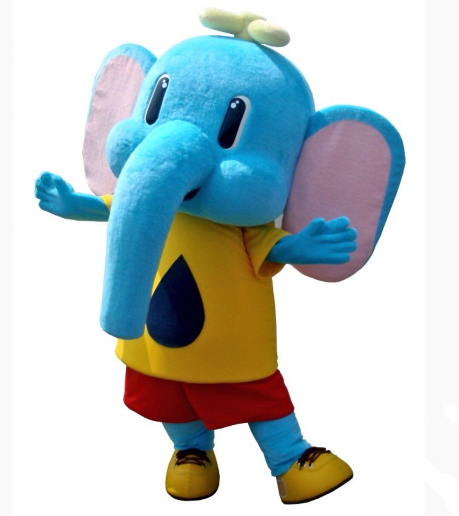 : Arazo-kun the elephant is the mascot of Arao City’s waterworks bureau. His trunk is a faucet.