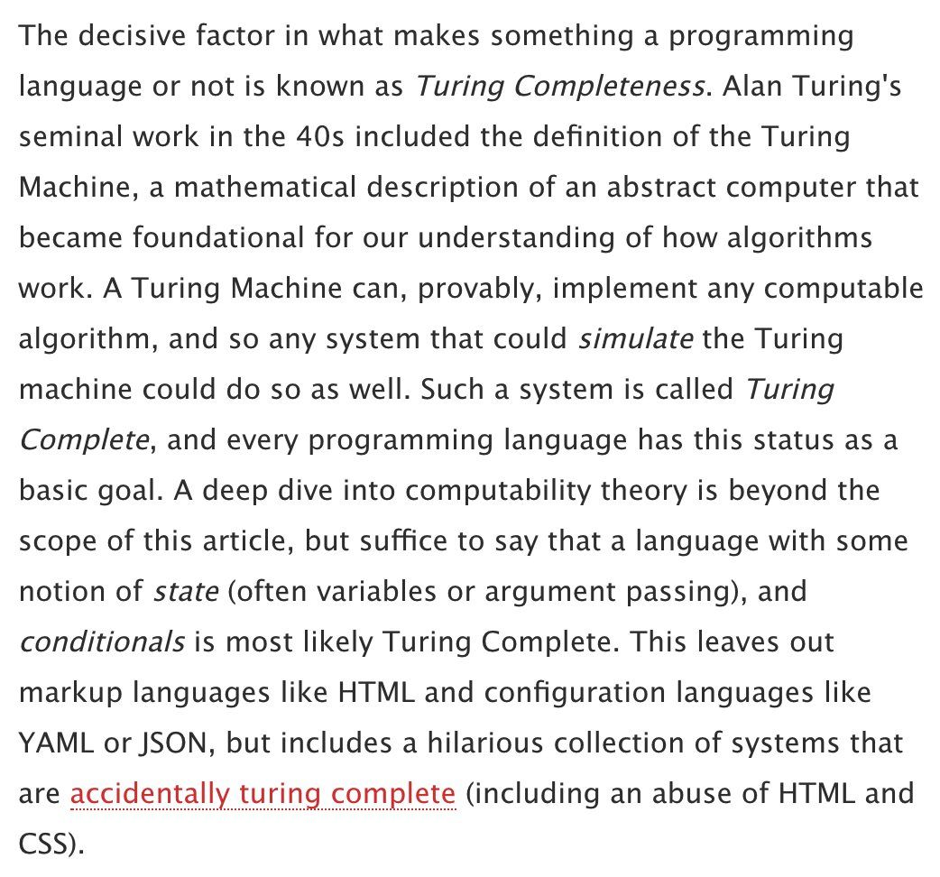 PL friends: working on a PL article for a developer audience, and I have ~1 paragraph to explain computability theory and turing machines. how's this?